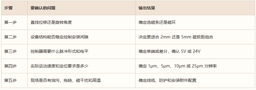 八、一张表看懂磁栅尺读数头选型顺序